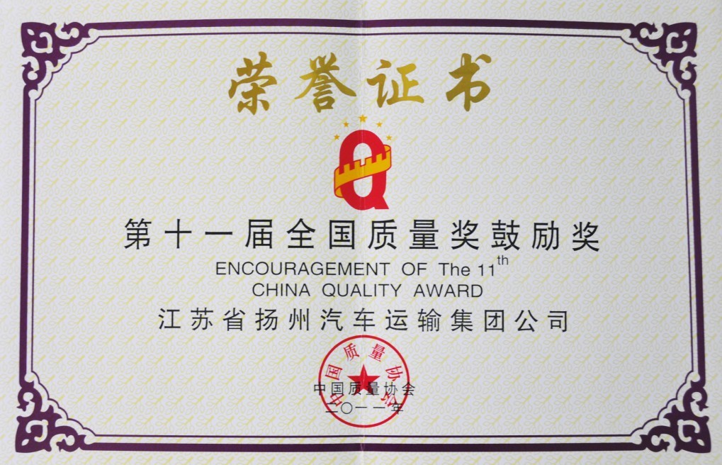 公司喜獲全國質量獎鼓勵獎