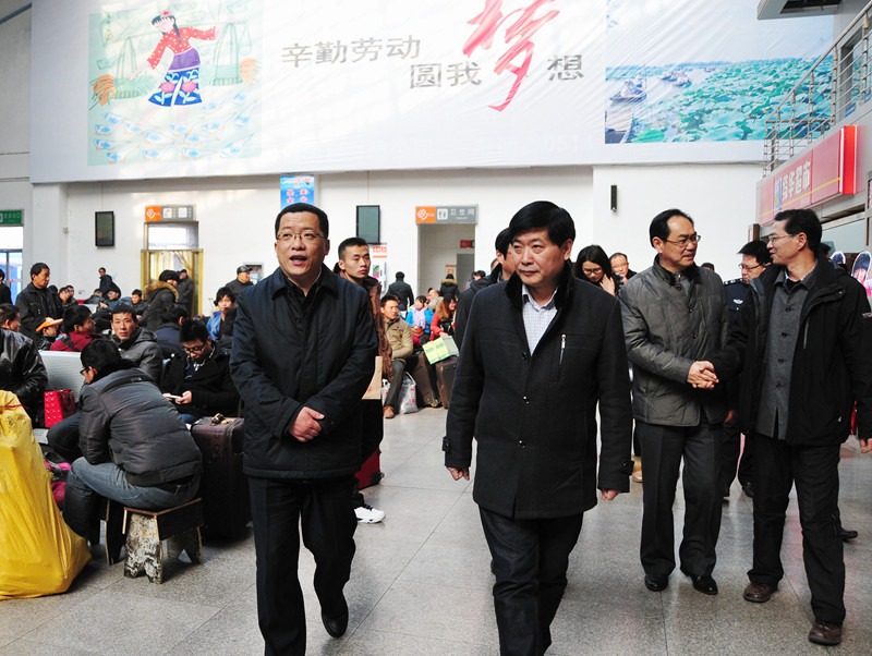 春節(jié)將至,為確保生產(chǎn)安全,讓群眾過一個歡樂祥和的節(jié)日,1月26日下午,市委常委、常務副市長丁純帶領市公安局、安監(jiān)局等相關部門負責人,來到揚州站檢查春運情況,向奮戰(zhàn)在春運一線的干部職工表示慰問。