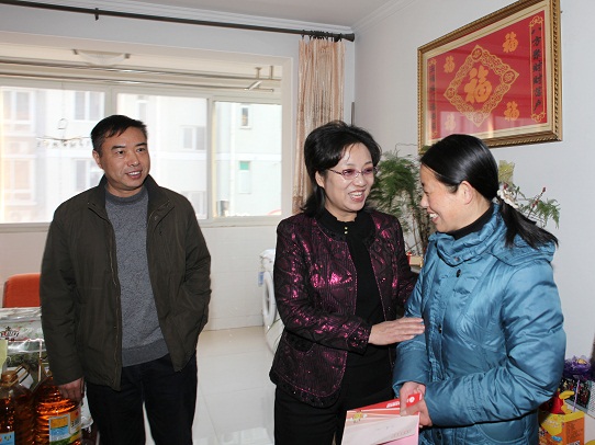 “快過年了,我代表省總工會來看看你們”,來到聯(lián)誼花園陸娟的家中,王愛平副主席首先送上了新春祝福和慰問金以及羽絨被、大米、油等生活必需品。44歲的陸娟是我司邗汽公司的一名普通職工,由于身患腎衰竭,身體不佳,需要長期服藥,女兒在外地上大學,家里開銷大,生活比較困難。王愛平副主席仔細詢問了陸娟的身體情況,囑咐她保重身體,有困難找工會這個“娘家”,祝愿她早日康復,走出困境。在各級工會組織的關心下,陸娟的病情已得到控制,現(xiàn)在仍然堅持上班,家里女兒也十分懂事,利用寒假期間打工補貼家用,一家人的生活正逐漸好轉起來。