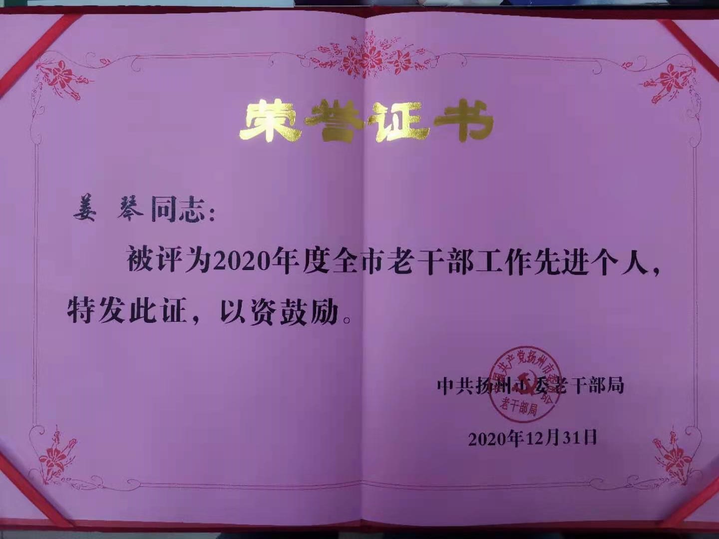 姜琴同志獲“2020年度全市老干部工作先進(jìn)個(gè)人”稱號