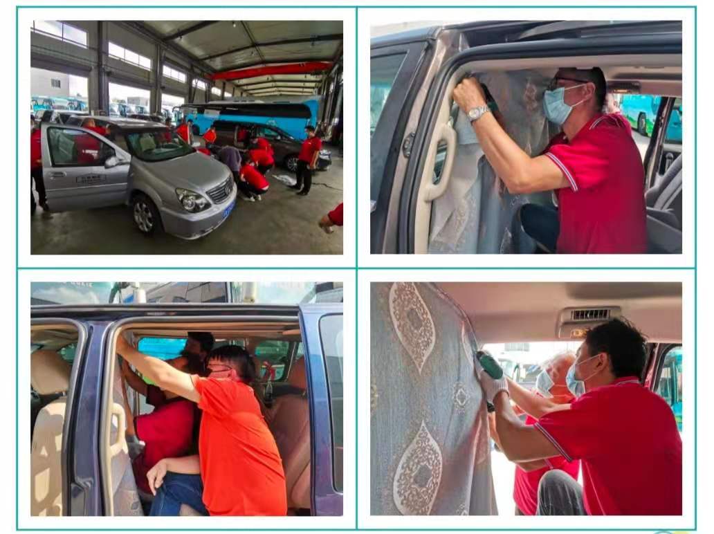 接到緊急指令后,修理廠立即召開會議,并迅速組建項目改造攻堅小組,統(tǒng)籌協調,明確責任分工,細化工作落實,明確改造進度,進行防疫接駁轉運車的改造,每輛車都加裝分隔簾,將駕駛艙與接駁轉運艙隔離。在承接轉運的工作人員與乘客間之間,拉起一層保護網,有效切斷轉運過程中工作人員與乘客間的病毒傳播途徑,更好的保護人員的安全。