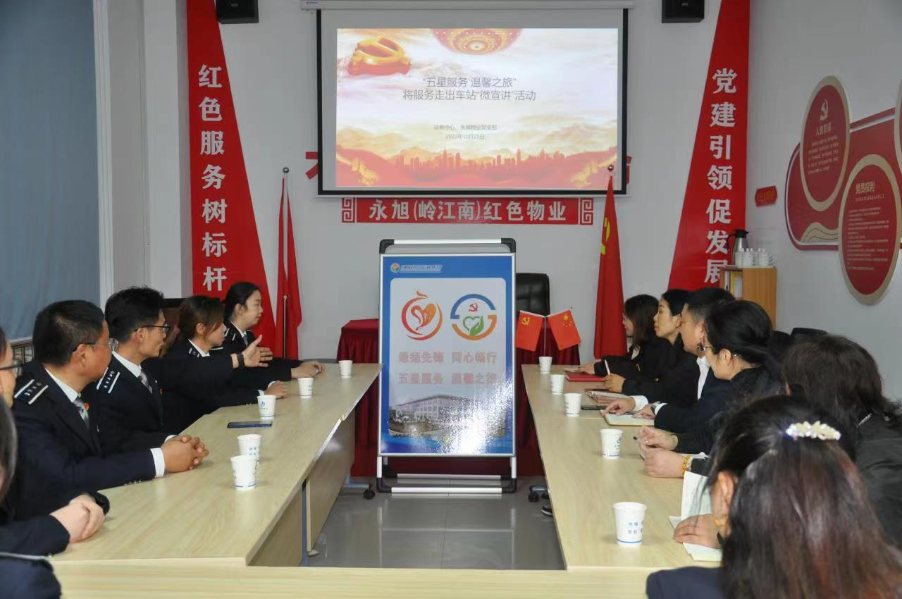 為進(jìn)一步發(fā)揮黨建引領(lǐng)作用,以黨建引領(lǐng)雙方資源共享、優(yōu)勢(shì)互補(bǔ),共同提高黨建和服務(wù)水平,10月25日下午,揚(yáng)汽集團(tuán)站務(wù)中心黨支部與永旭物業(yè)黨支部開展“五星服務(wù) 溫馨之旅”黨建共建活動(dòng),揚(yáng)汽集團(tuán)站務(wù)中心、永旭物業(yè)雙方相關(guān)負(fù)責(zé)人及工作人員參加活動(dòng)。