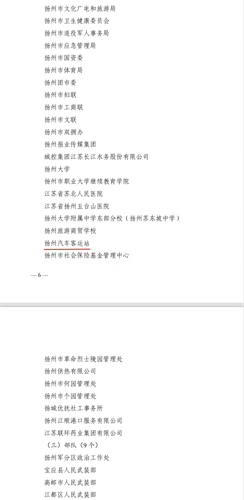 揚(yáng)州汽車客運(yùn)站榮獲市第八次爭(zhēng)創(chuàng)“全國(guó)雙擁模范城”模范單位