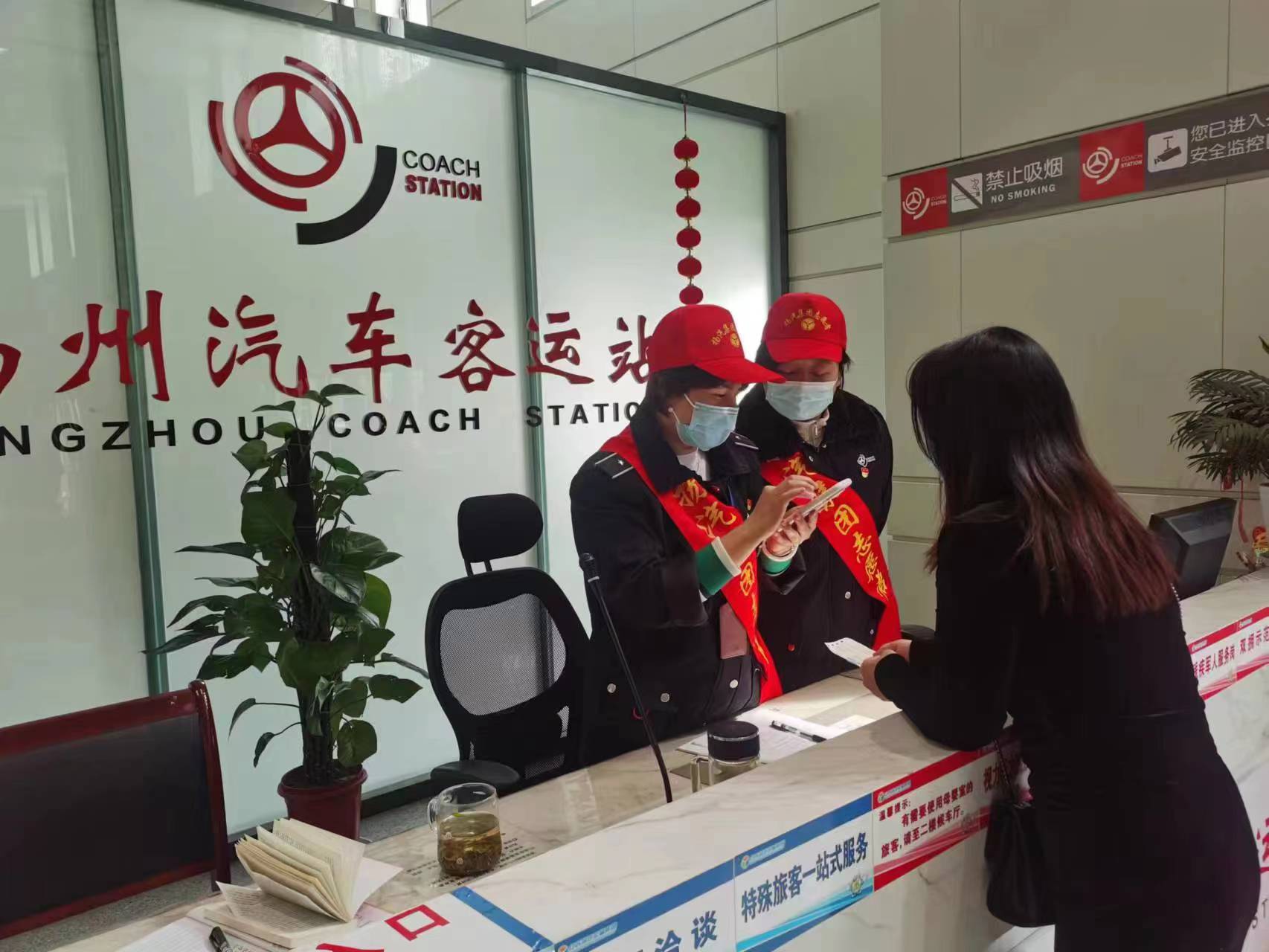 在江都汽車站,一位老奶奶就等在了車站門口拖著一個大大的尼龍袋子,服務(wù)臺的志愿者見狀趕緊上前詢問,原來老年人有急事去往南京,而且患有高血壓,一著急就頭暈,也不知道怎么購票,感覺早早來總不會錯,但看著現(xiàn)在車站這么多窗口和機(jī)器,一下子不知道應(yīng)該怎么操作。工作人員一邊安慰老人,一邊幫老人在窗口買好了票,并幫助老人運送行李,和發(fā)車員妥善安排好了老人的上車問題,才放心地回到自己的工作崗位。